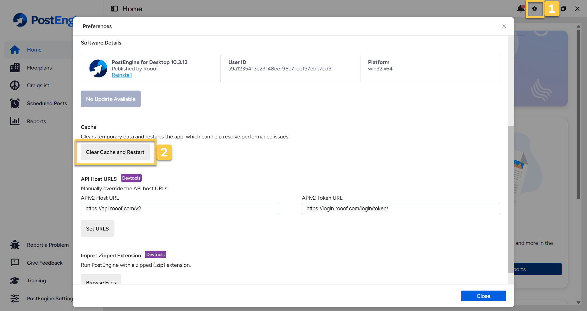 Clear Cache in PostEngine for Desktop
