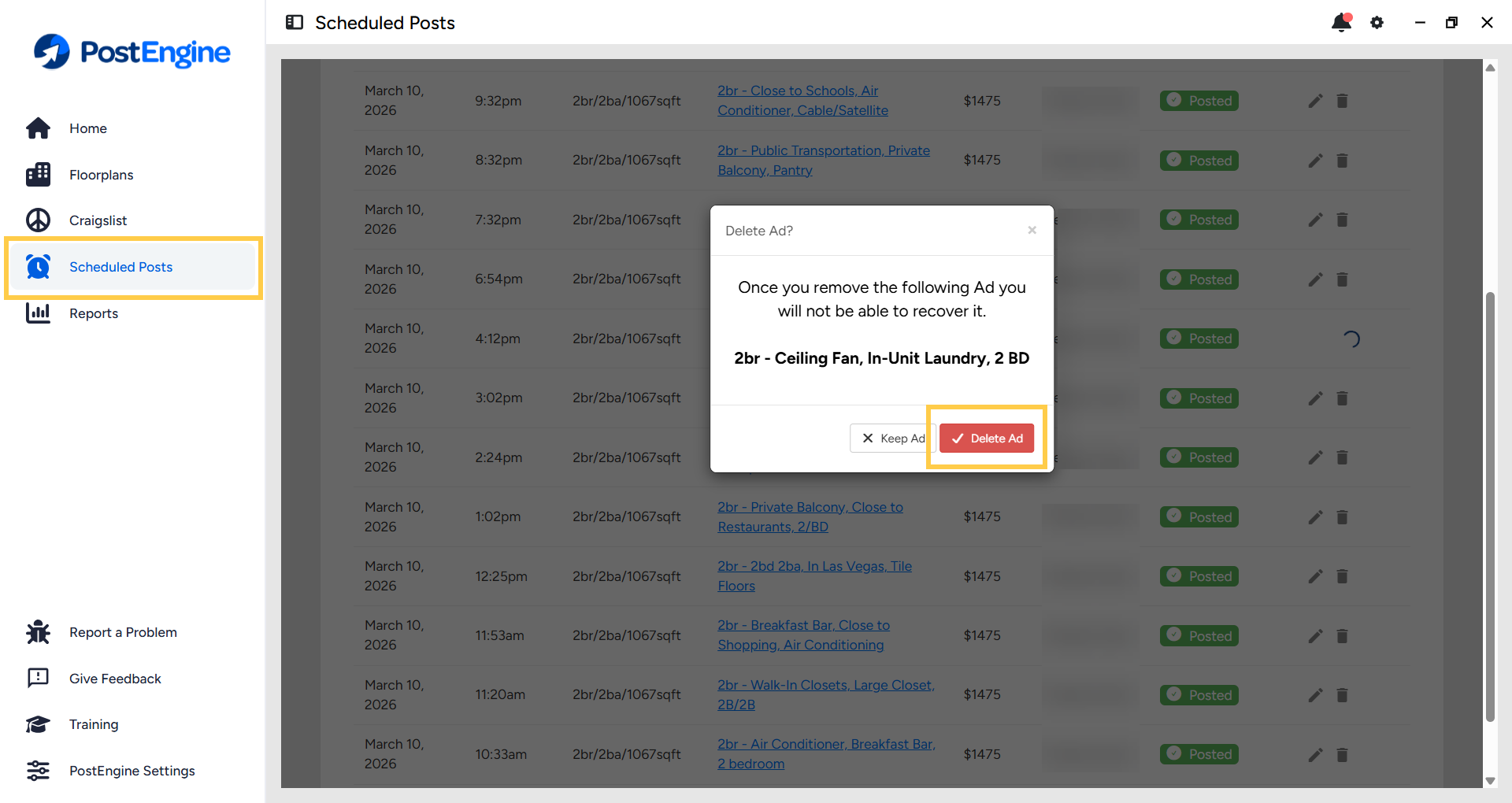 - Click Scheduled Posts to open the queue. Ads that have a status of Posted are live on Craigslist's listings page.